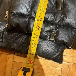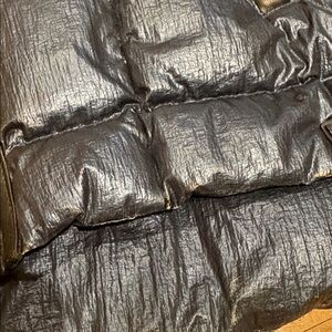 I have gloves too come whit jacket used in good condition some minor marks under arm but not to visible Chic metallic blue puffer. Features a cozy faux fur hood. Perfect for winter warmth.