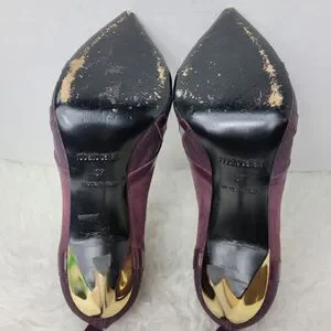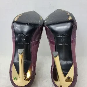 Roberto Cavalli Women's Stingray Purple Leather Bootie Heel Shoes Size 6.5 Good Condition See Pictures For More Details.