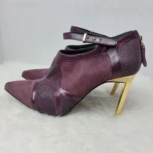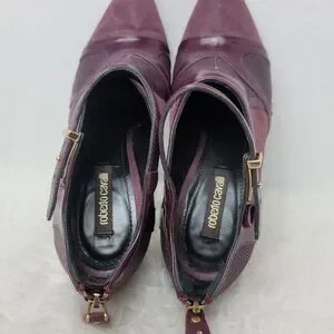 Roberto Cavalli Women's Stingray Purple Leather Bootie Heel Shoes Size 6.5