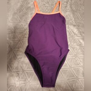 The Perry is a non-adjustable swim onesie that features contrasting stitching and binding for an athletic look. The contemporary design includes two over-the-shoulder straps that criss-cross along the back and transition into a cut-out detail along the ribcage.