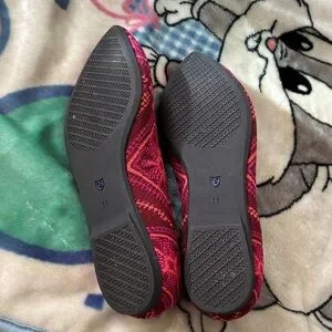 Chic fuchsia flats with a striking pattern. Features subtle blue accents. Ideal for stylish comfort.