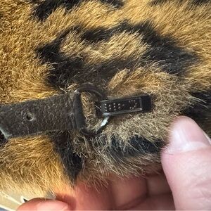 Coat has great metal hardware loop with hinged hook closures (see video). On the bottom closure, the loop has come off and needs to be resewn, if the Buyer chooses to do this. See the pictures, the loop is included.