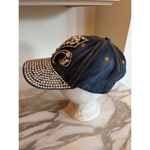Denim Baseball Cap Rhinestone Bling Embellished Adjustable Strap