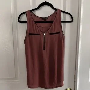 Chic tank top with front zipper. Stylish and versatile. Perfect for layering.