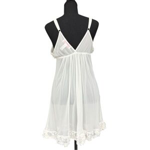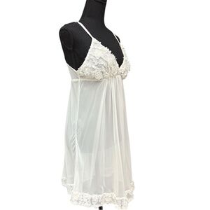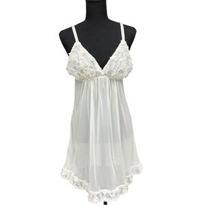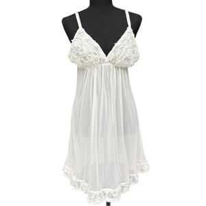 oscar de la renta slip, vintage babydoll slip, ivory lingerie dress, sheer babydoll dress, 90s lingerie, bridal slip dress, floral applique slip, vintage designer lingerie