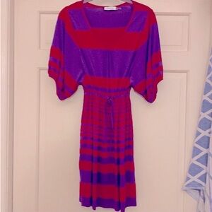 Red + Purple Sundress Dolman Short Sleeves Cinch Waist Colorblock Above the Knee
