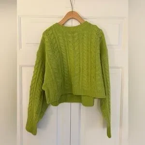 Bright lime cable knit sweater. Ideal for layering. Cozy and chic.