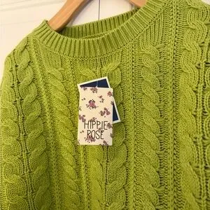 Hippie Rose Lime Cable Knit Sweater