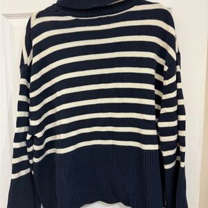 GAP Navy and Cream Striped Cowl Neck Sweater