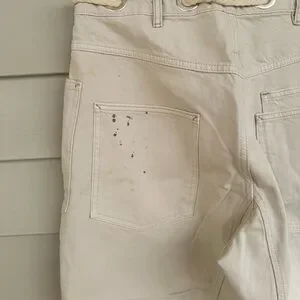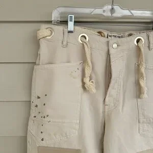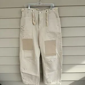 Chic cream barrel jeans with distinctive rope detail. Ideal for everyday style.