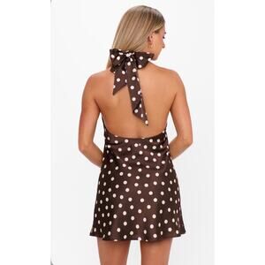 Show Me Your MuMu Jasmine Tie Mini Dress Chocolate Brown Polka Dot size Small