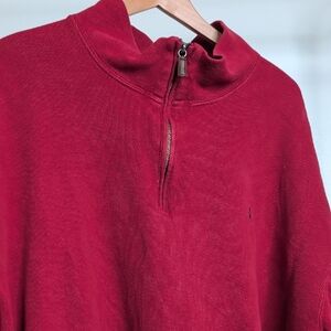 Stylish red zip-up sweater from Polo by Ralph Lauren. Perfect for casual wear. Comfortable and versatile.