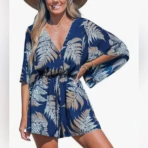 Cupshe Navy and Gold Leaf Print Swim Cover-Up