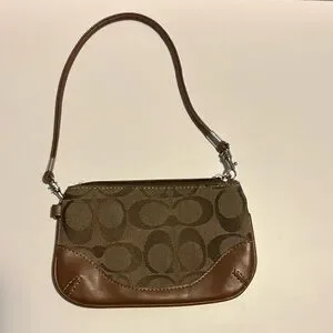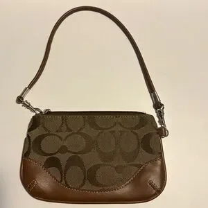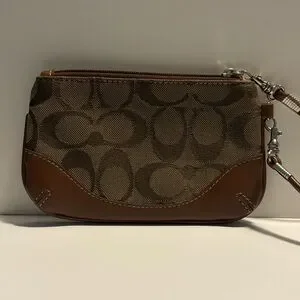 Coach Signature Print and Leather Wristlet Brown