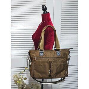 Ihkwip Women's Brown Nylon Cargo Catchall Tote With Two Crossbody Straps 2922