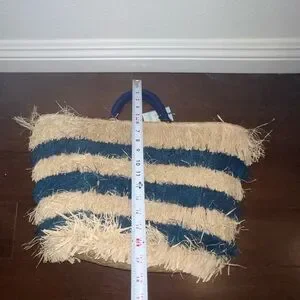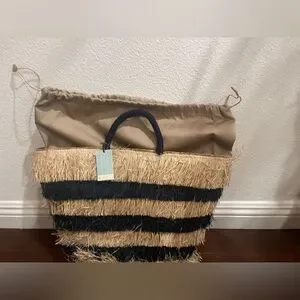 nwt kayu Tan and navy blue stripe Straw Tote Bag