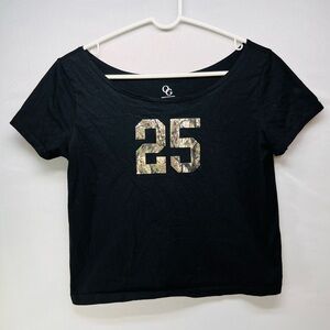 Stylish black women's top featuring a bold graphic design. Perfect for casual outings.