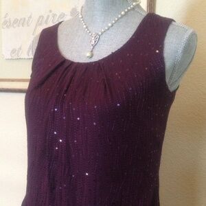 Beautiful wine sequin top perfect for the upcoming holidays. Fully lined. Size 4p but runs more like 2p. The top is way more beautiful than shown in the pictures.