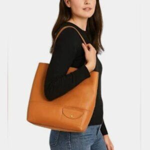A versatile, well-made leather tote from a trusted brand. J.Crew All Day Leather Tote in Roasted Chestnut Brown. Crafted from genuine pebbled leather, this classic tote features a spacious interior and comfortable shoulder straps, making it perfect for everyday use, work, or travel. Timeless design that pairs easily with casual or polished outfits.