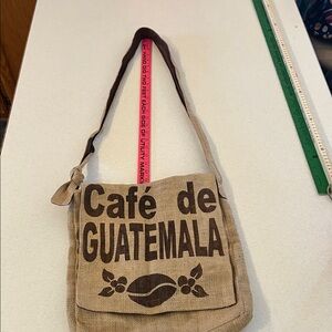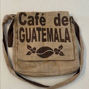 Café de Guatemala Crossbody Messenger Bag Coffee Bean Repurposed Jute Burlap
