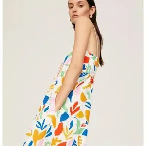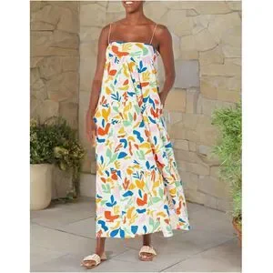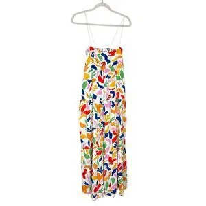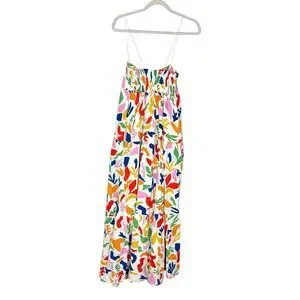 Show Me Your Mumu SMYM Long Weekend Maxi Dress Women's Small Multicolor Floral Tiered elastic spaghetti straps, colorful geometric pattern gauze cotton gauzy