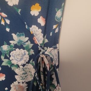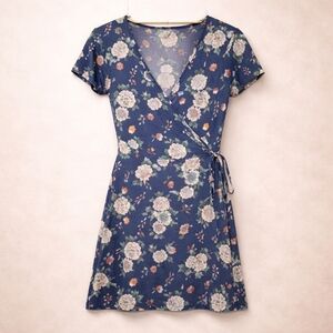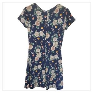 Aeropostale Navy Floral Faux Wrap Dress Small | V Neck Summer Fit & Flare