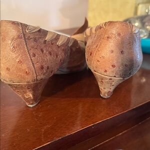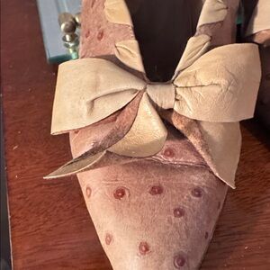 Vintage Ostrich Italian Shoe with Soft Leather Trim with Bow