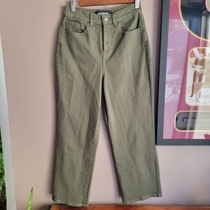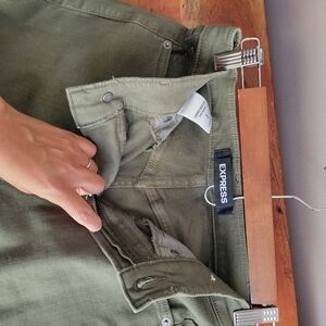 NWOT Express Women's Military Green Jean Super High Rise sz 2 Ankle Leg Stretch