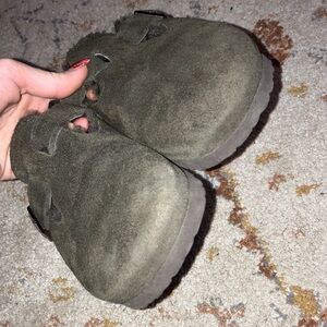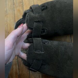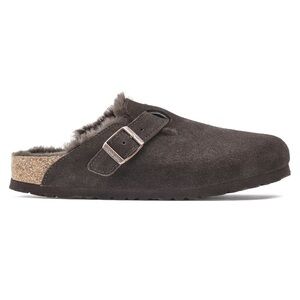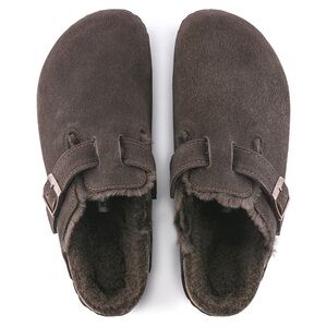 Birkenstock Boston Clog Shearling Dark Brown Suede Slippers