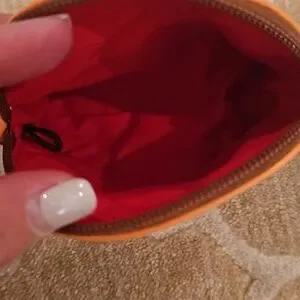 Stylish small orange leather wallet, perfect for everyday use. See photos, like new! Honestly, I dont think I ever used!