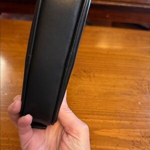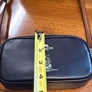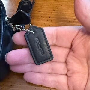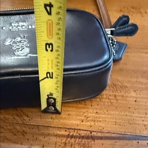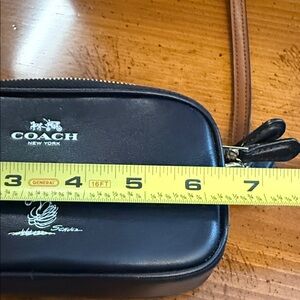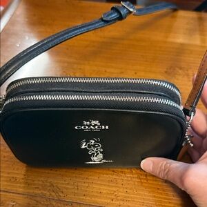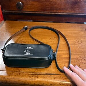 Black leather crossbody by Coach. Features sleek design and adjustable strap. Ideal for versatile styling. Like new, no tags. I bought it for Snoopy and have never used it. Smoke free, pet free home.