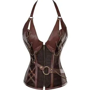 NWT Steampunk Corset Top Steel Boned Underbust Renaissance Brown Leather Cosplay NWT Sexy Zipper Front Bondage Cosplay Costume