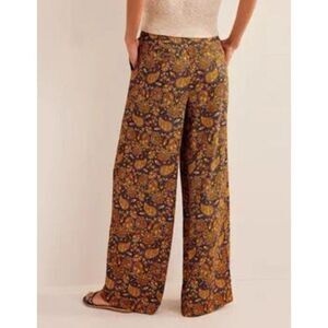 Boden Womens Pants UK 12 US 8 Gold blue Paisley Wide Leg Trousers R0305 NWT
