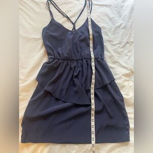 Brand new with tags navy blue dress from Lulu's with peplum detail, straight pencil skirt, multiple straps with fun criss cross detail. The brand is Solemio. Size medium with measurements pictured. Perfect condition, purchased years ago for an event and it doesn't fit!