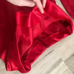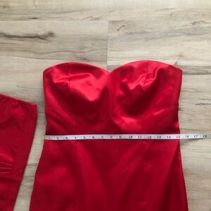 Stunning strapless gown with a layered skirt. Perfect for formal events.