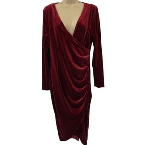 Burgundy Velvet Party Wrap Dress VNeck Stretchy Long Sleeve Midi. New without tags.