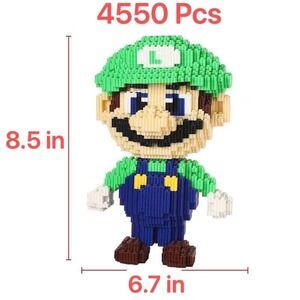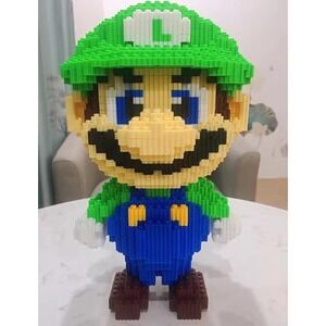 A detailed building block figure of Luigi from Nintendo's Mario series. This impressive construction toy stands approximately 8.5 inches tall and is comprised of 4550 interlocking pieces, allowing for a unique and engaging building experience. The vibrant colors and intricate design capture Luigi's iconic appearance, making it a fantastic display piece or play item. Perfect for young fans of video games or for anyone who enjoys hands-on creative projects.