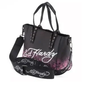 BRAND NEW! WITH TAGS! Bold Ed Hardy shoulder bag with black and pink hues. Features signature design and sturdy straps.