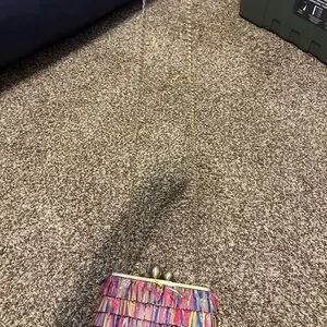 Vibrant clutch with playful fringe design. Ideal for adding flair to any outfit and fun for a festive occasion!