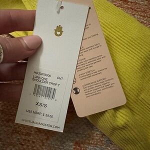 NWT spiritual gangster Luna crop one shoulder tee size XS/S in chartreuse