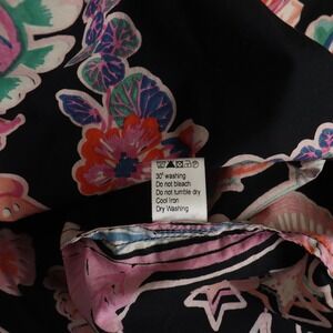 Banjanan Bethany Tie Neck Ruffle Top Rococo Fantasy Bird Print Black. Size Small.