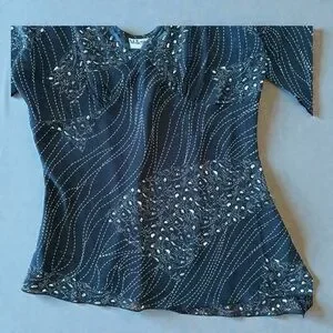 This chic navy blouse offers a sophisticated style with its elegant design. Perfect for both casual and formal occasions, it provides a comfortable and flattering fit.