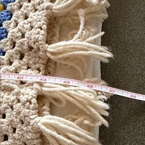 Vibrant crochet poncho featuring a multicolor square pattern. Includes fringe detailing for a boho look. Check out all pics for details and approximate measurements.