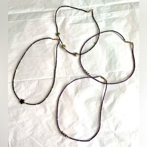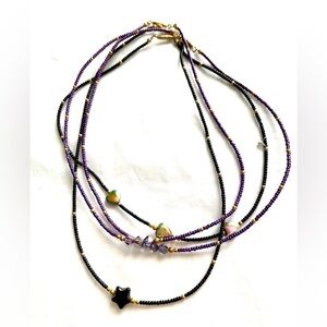 New Matching Set Four Necklaces or double to make 8 Bracelets Purple and Gold Beads Gold Twisting Screw Clasps Hearts Stars Can maker 4 gifts. Bundle to save money Final Price