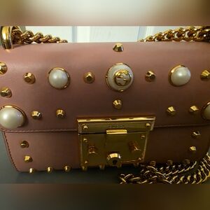 Gucci Pearl Studded Padlock Chain Pink Leather Crossbody Shoulder Bag Purse