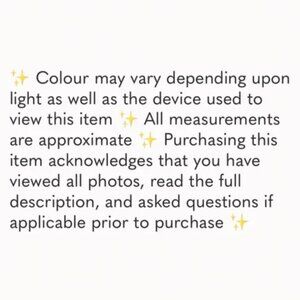 ✨ Colour may vary depending upon light as well as the device used to view this item ✨ All measurements are approximate ✨ Purchasing this item acknowledges that you have viewed all photos, read the full description, and asked questions if applicable prior to purchase ✨