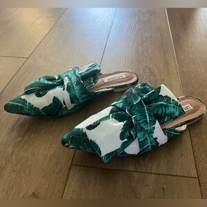 Cape Robbin Knot Slip On Pointy Toed Flat Mules with Tropical Leaves Women’s 8