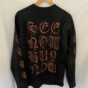 Balenciaga Black Long Sleeve Tee with Brown Print