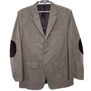Tasso Elba Brown Corduroy Safari Blazer Jacket Tan Elbow Patches XL