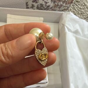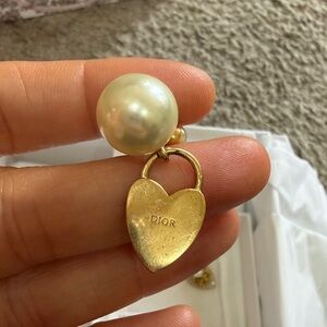 Chic Dior earrings with gold and pearl accents. Features heart design for a stylish touch.